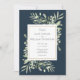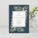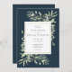 Invitation Feuilles vertes Deep Sea Blue Gold Mariage