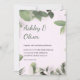 Présentant notre belle faire-part de mariage rose pâle avec une bordure botanique de feuilles verts, parfait pour les couples qui veulent incorporer la nature à leur journée spéciale. La délicate couleur rose crée une atmosphère douce et romantique, tandis que la bordure botanique complexe ajoute une touche d'élégance et de sophistication. La bordure botanique, avec des feuilles verts qui ornent le dessus, le fond et les côtés, crée une sensation naturelle et intemporelle qui donnera le ton à votre célébration mariage. La majorité du texte est dans un gris foncé et élégant, qui équilibre parfaitement la simplicité et l'élégance de l'invitation. Les noms du couple sont surlignés dans un vert foncé qui correspond à la verdure à la frontière, ajoutant une touche personnalisée à l'invitation. Cette invitation conviendra parfaitement aux couples qui souhaitent garder leur thème mariage simple mais élégant. Le design botanique ravira vos invités et leur donnera un aperçu du beau mariage qui les attend. L'invitation est également parfaite pour les couples qui ont choisi le vert comme couleur mariage principale, car il complète parfaitement le thème. L'invitation est faite avec des matériaux de haute qualité et imprimé avec le plus grand soin pour s'assurer qu'il a l'air étonnant et se démarque. La taille est standard, ce qui le rend facile à manipuler et à envoyer. Avec cette invitation, vous pouvez être sûr que vos invités seront impressionnés et heureux d'assister à votre journée spéciale. En résumé, notre faire-part de mariage rose pâle avec une bordure botanique de feuilles verts est parfaite pour les couples qui apprécient la nature, la simplicité et l'élégance. Il est joliment aménagé avec une bordure botanique et des couleurs choisies avec soin, ce qui en fait une invitation idéale pour les couples qui veulent donner le ton pour une belle fête mariage.
