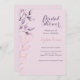 Présentant notre invitation à la douche nuptiale en fleurs d'orchidées radiantes, un mélange harmonieux d'élégance moderne et de sérénité naturelle. Cette invitation présente une luxueuse teinte de violet en toile de fond, ornée de délicats feuilles violets et roses, créant un design simple mais captivant imprégné de beauté botanique moderne. La teinte violette royale, complétée par des teintes douces de feuilles roses et violets, crée une composition visuellement enchanteresse. L'interaction de ces couleurs ajoute de la profondeur à la conception, renforçant l'allure du feuillage délicat. Contre la riche toile violette, les feuilles violets et roses forment un motif gracieux, rappelant un jardin serein baigné de lumière. Cette invitation est plus qu'une simple papeterie, c'est une ode visuelle à l'amour et au charme intemporel de la nature. L'arrière - plan royal violet, orné de feuilles blancs et roses, les invités invitations dans un monde de grâce contemporaine et la promesse de nouveaux débuts. Il donne le ton parfait pour une douche nuptiale remplie de rires, de moments chéris, et l'anticipation d'un beau voyage ensemble. Faites preuve de simplicité dans la nature et annoncez votre douche nuptiale avec style avec notre Invitation à la douche nuptiale en fleurs d'orchidées radiantes. Ce n'est pas seulement une invitation ; c'est un hommage éclatant à l'amour et à la beauté sans effort des moments les plus précieux de la vie. Commandez dès maintenant et laissez vos invitations apporter une touche de charme naturel dans votre célébration, promettant une journée remplie d'amour, de joie et de délicieuses surprises.