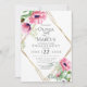 FAIRE-PART DE FIANÇAILLES INVITATION | Des pivoines roses aquarelles avec de la verdure ornent un cadre en diamant à facettes multiples de style géométrique doré. Le verso est d'une couleur complémentaire coordonnée. Personnalisez le texte, le style de police, la couleur et la taille. Nous avons créé ce modèle pour vous permettre de le personnaliser facilement avec vos propres informations. Cela fait partie d'une suite complète de papeterie de mariage avec de la papeterie de mariage, de baby shower et d'autres événements assortis conçus par WhimsicalArtwork™.