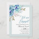 Bleu et vert menthe fleurs d'aquarelle fiançailles à fleurs florales invitation. Un joli design mariage qui comprend des fleurs d'aquarelle dans les tons bleu et vert menthe et feuille. L'expression "Nous sommes engagés" est en typographie de script.