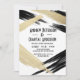 Cette invitation glamour et moderne à la fête mariage est parfaite pour le couple élégant et branché. Il représente un motif de brosse à brosse en or imitation et un bracelet en ardoise noir sur un motif blanc. Sur le dos se trouve un gros coup de pinceau faux doré sur une couleur noire corbeau. C'est minimaliste, artistique, chic, artistique et joli !