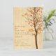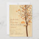 Invitation rustique et avec du charme pour un événement extérieur d'automne. Couleurs montrées : Gamme de brun clair au brun foncé et à l'orange de rouille à rouge-foncé. L'arrière - plan de motif de fibre de bois de Faux et la petite image d'inséparable continue sur le postérieur (copie l'information supplémentaire de RSVP ou de voyage sur l'inverse).