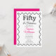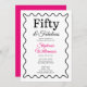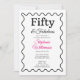 Fifty and Fabulous Black and Pink Script Invitation. A modern 50th birthday invitation that you can personalize and send out for your fiftieth birthday party celebration. The words "Fifty and Fabulous" are set using trending font typography. The elegant text colors can be changed using the edit menu.