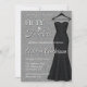 Fifty and Fabulous script minimal black, silver, and white glitter modern 50th birthday invitation that you can personalize and send out for your fiftieth birthday party celebration. The words "Fifty and Fabulous" are set on a silver glitter background, with popular white script font typography, placed aside an elegant, sophisticated black glitter strapless evening gown. Have fun customizing the name, date and time, location, and RSVP with the editing tool.