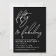 Celebrate in style with this elegant yet modern Fifty and Fabulous Birthday Party Invitation, perfect for marking a milestone in chic fashion. The design features a bold black background on the front with “Fifty & Fabulous” at the top in flowing white handwritten script for a stylish, celebratory feel.