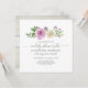 Palette de couleurs éthérées, tendance, muet, lilas, lavande et violets assortis, associés au blanc doux, au charbon de bois, aux verts bleutés et au gris. Des lignes simples et propres de blanc et de violet rose floral et feuillage swag sur le devant et gris doux arrière - plan en bois avec une bande de texture lin blanc et une bordure de fleurs sur le côté arrière a une place pour votre RSVP et l'information de registre. Copyright artistique Audrey Jeanne Roberts, tous droits réservés.