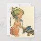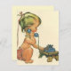 Illustration vintage d'enfants et de bébés avec une jeune fille blonde mignonne avec des queues de cheval parlant sur son premier téléphone. Appelez tous vos amis et annoncez-leur la bonne nouvelle !