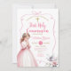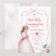Fille de la première communion florale rose priant l'invitation de la croix dorée