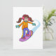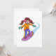 Une fille fait du snowboard sur une pente. Cette conception semble vraiment efficace sur ces invitations
