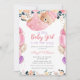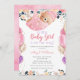Invitation Fille d'ours rose sur son chemin, Baby shower flor