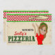 Jolie invitation à la pizza. Ouvrez une petite pizzeria dans votre maison. nous avons des tabliers, des boutons, des t-shirts et des bannières assortis pour accrocher au-dessus de votre porte qui correspondent tous à cette invitation de pizza party, Un thème d'anniversaire amusant pour tous les enfants de tous âges.