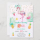 Invitation Fille Flamant rose 1er anniversaire Couleur d'eau
