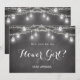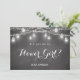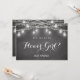 Carte d'invitation Fille Fleur noire avec pot mason, guirlande lumineuse et fond tableau noir/rustique. Invitation Demoiselle d'Honneur/ Fille Fleur/ Cortège de Mariée. Découvrez notre collection de produits ci-dessous pour plus de produits avec ce design, Utilisez l'option Personnaliser ce modèle pour modifier le texte .