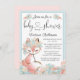 Invitation Fille Fox rose Turquoise or Baby shower d'aquarell