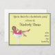 Fille/invitation en verre partie de Martini Bachelorette. Arrière - plan jaune-clair. Robe rose et fleur assortie dans les cheveux.