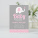 Invitation Fille - Joli Baby shower d'éléphant gris rose