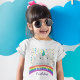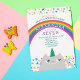 Invitation simple et moderne pour le 1er anniversaire de bébé fille avec licorne, chat mignon, arc-en-ciel et étoiles !
