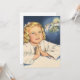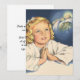 Illustration religieuse vintage représentant le portrait d'une jeune fille blonde priant avant de dormir et rêvant de Jésus-Christ.