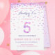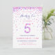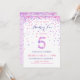 Fêtez l'anniversaire de votre enfant de 5 ans avec des confettis colorés rose et violet sur ces invitations d'anniversaire de 5 ans ! Avec les détails de la fête de votre fille et un "5" en confetti. Le dos a un design confetti avec une couleur lavande douce. Ce design adorable est super mignon et girly - et parfait pour la fille qui aime le rose et le violet!
