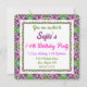 Fille's Bold Fall Green Automne Rose Anniversaire Invitations. Une carte d'invitation carré audacieuse et colorée pour votre fille à donner à leurs amis et à leur famille pour les invitations à leur fête d'anniversaire. Modifiez le texte à votre place à l'aide du bouton Personnaliser. Ou modifiez les couleurs et la disposition dans l'outil de conception. Les couleurs du texte sont tirées des couleurs de la bordure vibrante. Les couleurs de la frontière travaillent pour les anniversaires fin été et automne (automne). Le texte contient tous les détails importants, tels que le nom de l’enfant d’anniversaire, son âge, son heure et sa date et l’emplacement du lieu de la fête. Une invitation joyeuse, audacieuse, aux couleurs tropicales pour une célébration importante. L'arrière des invitations montre un joli motif, qui peut être gardé comme une jolie décoration murale ou un gardien décoratif par le destinataire.