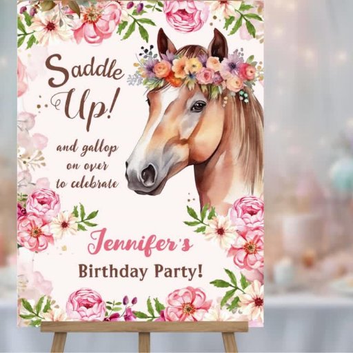 Invitation Filles Cheval 10e anniversaire Floral Saddle Up!