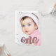 Parties scintillant d'or minimaliste Rose Invitation de premier anniversaire. Caractéristiques design d'une simple photo avec "un" dans la parties scintillant moderne rose or tendance. Ajoutez les détails de la partie sur le dos.
