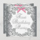 Jeunes filles roses blanches 1er anniversaire invitation de fête.