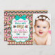 Invitation à la fête de premier anniversaire des filles tribales avec des flèches tribales et un arc bleu turquoise foncé sur un joli arrière - plan de design indien Aztec d'Amérique du Sud-Ouest. Vous pouvez facilement customiser cette adorable invitation de premier anniversaire tribal douce en ajoutant simplement votre photo et les détails de l'événement. Il s'agit d'un design imprimé sans arcs réels, parties scintillant, etc.