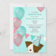 Invitation filles turquoise ballons roses chiot fête d'annive