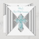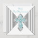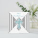 Invitation turquoise de la première communion bleu et argent de la fille avec élégante croix de diamant bleu et argent turquoise sur un arrière - plan argent et bleu turquoise. Vous pouvez facilement customiser cette jolie invitation de première communion bleue turquoise en ajoutant les détails de votre événement dans la taille et la couleur de police, et le libellé de votre choix.