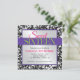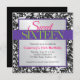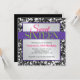 Cette douce invitation de fête de 16 ans présente un tourbillon blanc et motif floral sur un arrière - plan noir. Le texte est vert citron sur violet et accentué de rose. Le texte personnalisable vous permet d'ajouter les détails de votre partie.