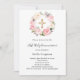 Un élégant arrière - plan blanc, décoré de fleurs roses et blanches aquarellées dans une couronne et une croix dorée. Personnalisez et ajoutez un nom et des détails.