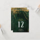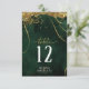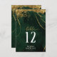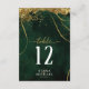Un arrière - plan d'aquarelle dans les tons vert émeraude est surmonté d'une abstraite de lignes dorées fines et d'effets lumineux scintillants pour créer les pièces de cette belle suite mariage. La carte de numéro de table mariage présentée ici présente également une calligraphie élégante et un modèle pour ajouter facilement vos propres noms, date de mariage et numéros de table. Recherchez ID867 pour voir d'autres pièces et choix de couleurs pour cet ensemble.
