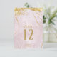 Un arrière - plan d'aquarelle dans les tons de lavande douce à mauve est surmonté d'une abstraite de lignes dorées fines et d'effets lumineux scintillants pour créer les pièces de cette belle suite mariage. La carte de numéro de table mariage présentée ici présente également une calligraphie élégante et un modèle pour ajouter facilement vos propres noms, date de mariage et numéros de table. Recherchez ID867 pour voir d'autres pièces et choix de couleurs pour cet ensemble.