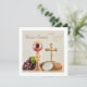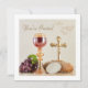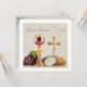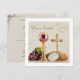 Celebrate a meaningful and joyful day with this elegant First Holy Communion invitation, designed to coordinate beautifully with a full matching party collection. Featuring a reverent Eucharistic design with a chalice, host, bread, wine, and grapes on the front, this invitation sets the tone for a faith-filled celebration.