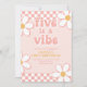 Five est une Vibe Super Girl Retro inspiré 5ème anniversaire invitation avec des polices de style années 70 et des marguerites et motif vérificateur.