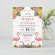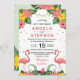 Flamant rose floral tropical Design été avec fleurs roses et jaunes et cofetti or