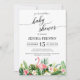 Invitation Flamant rose tropical Feuille Baby shower de scrip