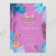 Invitation Flamants roses Feuille tropicaux bleu rose doux 16