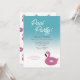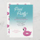 Fond ombré sarcelle pour une invitation à une fête au bord de la piscine avec un flamant rose flottant en bas.