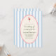 Celebrate your special day with a playful retro tropical vibe! This wedding invitation features a soft blue striped background, a charming pink flamingo, and a rope-bordered oval frame with green text. Perfect for couples who love whimsical elegance with a touch of island flair.