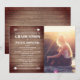 Une invitation à la remise de diplômes avec une ancienne planche en bois rustique inspirée de l'arrière - plan à l'avant et à l'arrière avec texte et flèches blancs personnalisés. Personnalisez avec votre propre photo devant à droite.