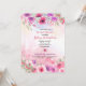 Les fleurs roses et violettes douces sont rendues dans un effet d'aquarelle contre un arrière - plan de lavage d'aquarelle rose avec des éclaboussures de peinture subtiles. Parfait pour une fête de mariée, un anniversaire ou une fête de fiançailles sur le thème du rose, de l'aquarelle ou du jardin. Disponible avec des produits correspondants.