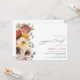 Une belle invitation à la fête de fiançailles parfaite pour l'automne, avec un arrangement parallèle de fleurs d'aquarelle bordeaux, orange, ivoire et pêche. "fiançailles" est en caractères de script modernes.