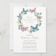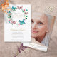 Une élégante célébration personnalisée de la vie photo invitation de souvenir avec une couronne fleurie de papillons. Conçu par Thisisnotme©