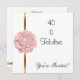 Invitation anniversaire célébration fête blanche avec garniture dorée et fleur de perle rose et blanche, fabuleuse à 40 ans. Personnalisez avec vos détails.