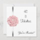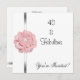 Invitation Anniversaire Fête de fête White with Silver Trim and Pink and White Pearl Flower, Fabuleux à 40 ans.