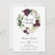 Élégante invitation à brunch à fleurs avec "Brunch & Bubbly" entourée de couronne de prune foncée et de fleurs d'aquarelle blanche accentuée par feuille d'or rose faux et feuilles verts. Personnalisez les invitations de fleurs de prune en ajoutant vos détails de douche ci-dessous. L'invitation revient à un arrière - plan solide couleur prune foncée. Conçu pour coordonner avec notre collection de mariages floraux de prune foncée.