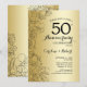Invitation pour une fête d'anniversaire de mariage de 50 ans Fleur d'Or. Design moderne minimaliste avec des dessins de contours botaniques et une typographie en écriture script. Carte d'invitation élégante parfaite pour une célébration élégante. Peut être personnalisée pour n'importe quelle année de mariage. Cartes d'invitation Zazzle imprimées ou modèle numérique téléchargeable instantanément.